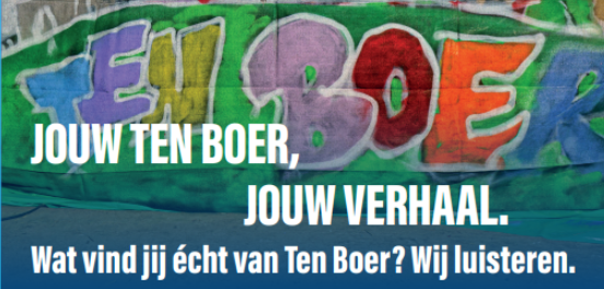 Op vrijdag 7 november organiseert het gebiedsteam een avond voor jongeren rondom het Toekomstprogramma Ten Boer. Wij willen van jongeren horen wat hun wensen en ideeën voor de toekomst van het gebied.