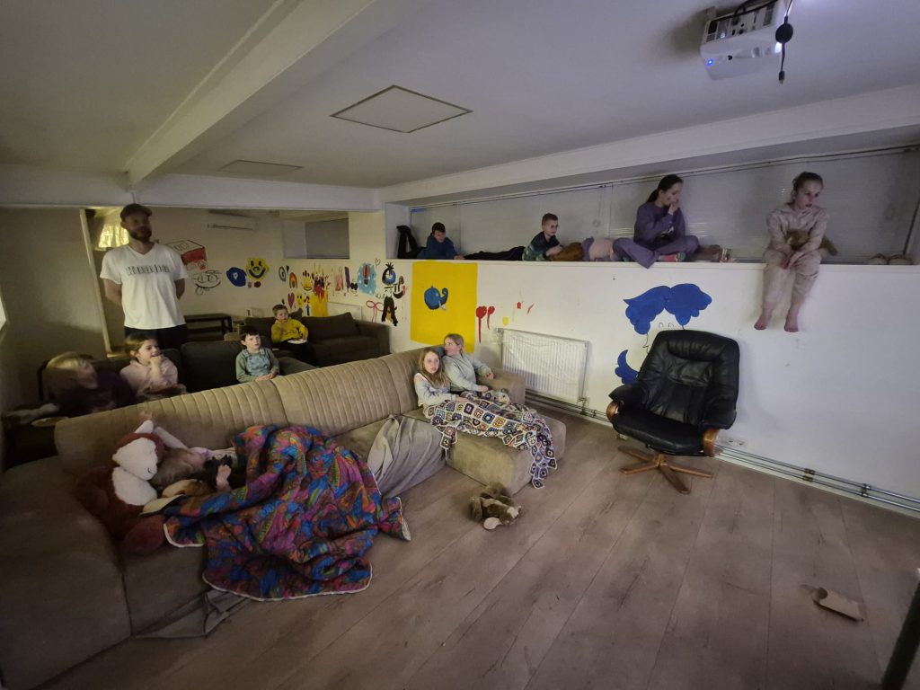 Terwijl de buiken gevuld werden, droogde de verf in de kinderkamer en werd deze omgetoverd tot bioscoop, dus na het eten konden de kinderen plaatsnemen voor het witte doek.